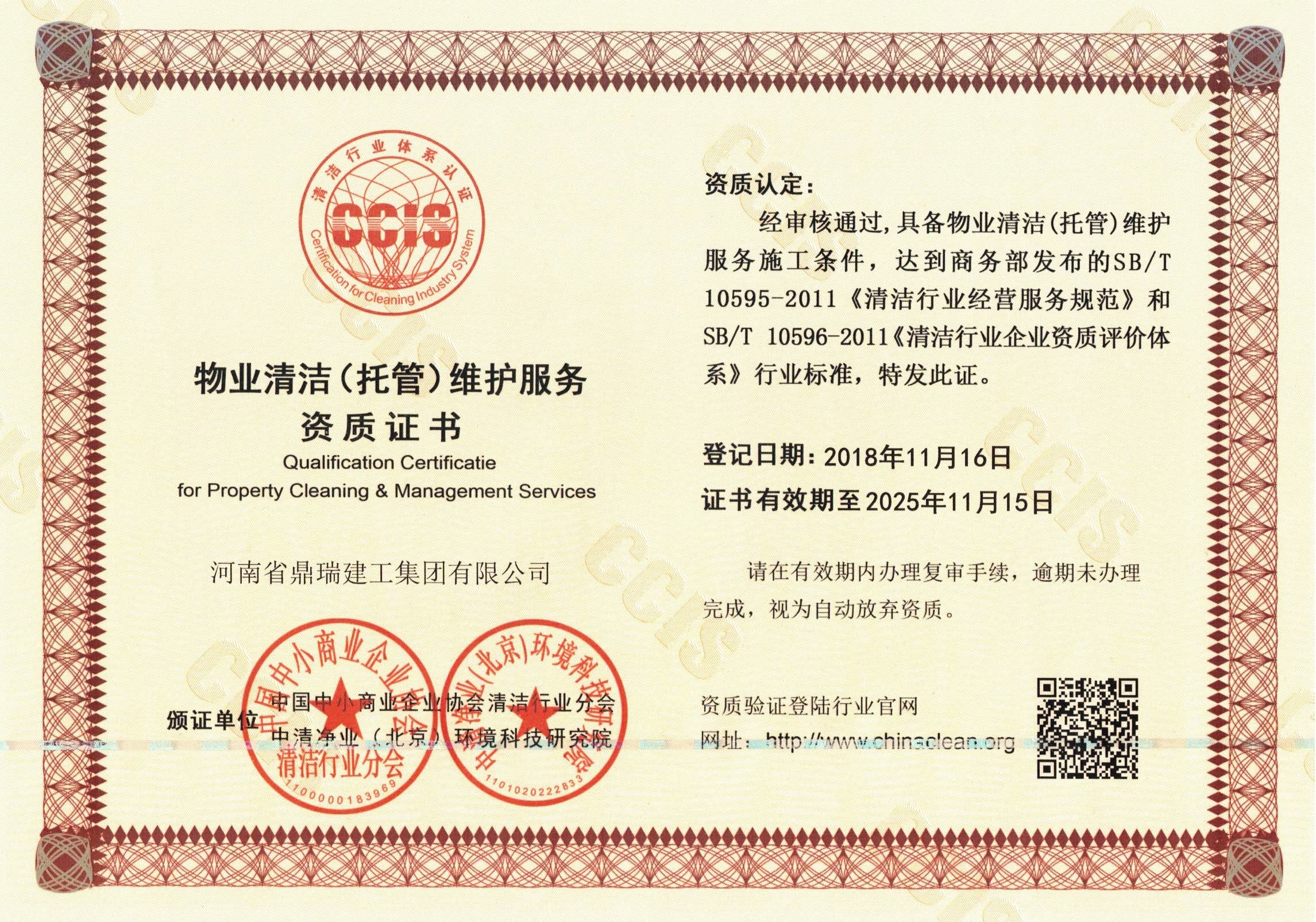 物業(yè)清潔(托管)維護服務資質證書