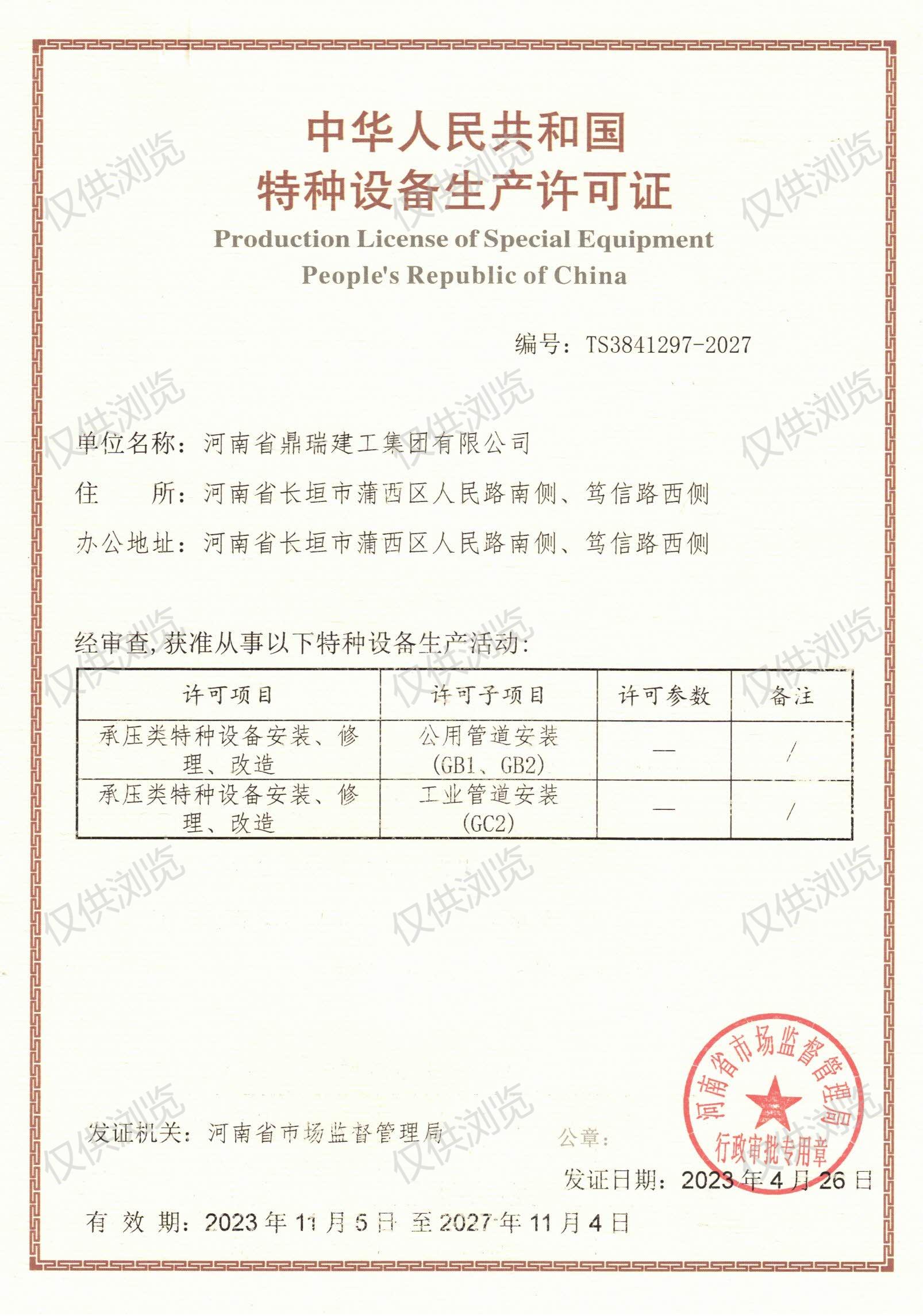 特種設備生產許可證